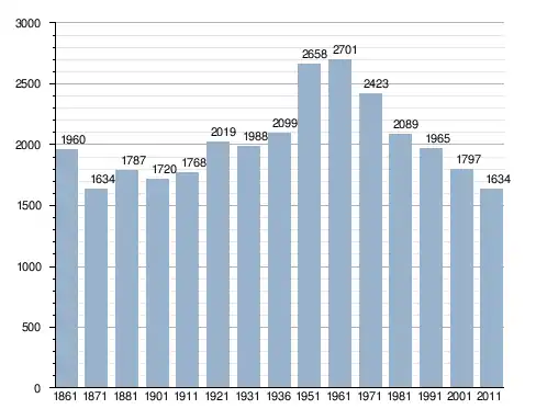 في سنة 1861 بلغ عدد السكان 1٬960 نسمة، وتطور العدد ليصل في سنة 2011 لـ 1٬634 نسمة.