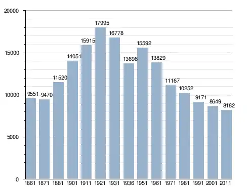 في سنة 1861 بلغ عدد السكان 9٬551 نسمة، وتطور العدد ليصل في سنة 2011 لـ 8٬182 نسمة.