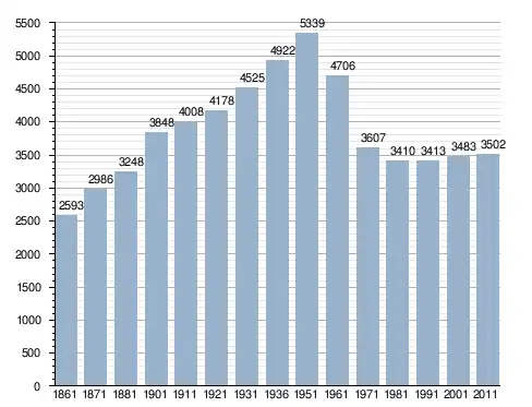في سنة 1861 بلغ عدد السكان 2٬593 نسمة، وتطور العدد ليصل في سنة 2011 لـ 3٬502 نسمة.