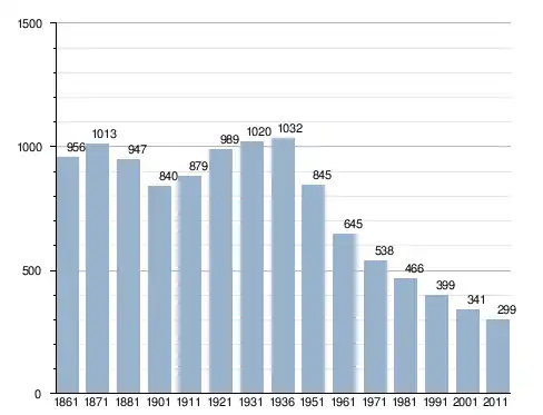 في سنة 1861 بلغ عدد السكان 956 نسمة، وتطور العدد ليصل في سنة 2011 لـ 299 نسمة.