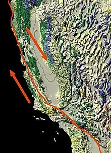 فالق سان أندرياس هو صدع متحول قاري يمتد بطول حوالي 1200 كلم (750 ميل) في ولاية كاليفورنيا في الولايات المتحدة.[1][2][3] وهو يشكّل الحدود التكتونية بين صفيحة المحيط الهادئ وصفيحة أمريكا الشمالية، وتتمثّل حركته في الانزلاق الجانبي الأيمن (الأفقي). ينقسم الصدع إلى ثلاثة أجزاء، ولكل منها خصائص مختلفة كاختلاف درجات شدّة الزلازل التي تقع فيها. يتراوح معدل الانزلاق على طول الصدع بين (20 إلى 35 ملم)/سنة.
