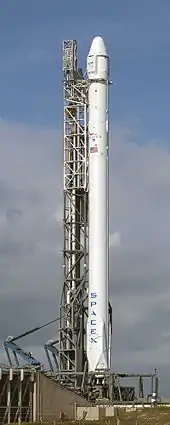 ![]() صورة للصاروخ فالكون 9 النسخة 1.1 وهو يحمل مركبة الشحن دراغون صورة للصاروخ فالكون 9 النسخة 1.1 وهو يحمل مركبة الشحن دراغون | |