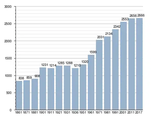 في سنة 1861 بلغ عدد السكان 838 نسمة، وتطور العدد ليصل في سنة 2017 لـ 2٬666 نسمة.
