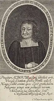 فالنتين البرتي (بالألمانية: Valentin Alberti) (و. 1635 – 1697 م) هو فيلسوف، ومؤلف، وعالم عقيدة، وكاتب ألماني، توفي في لايبزيغ[8]، عن عمر يناهز 62 عاماً.