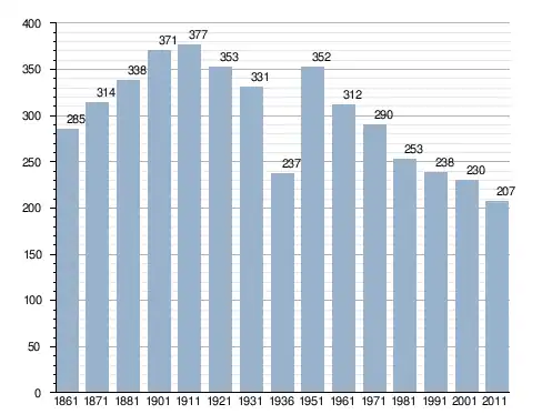 في سنة 1861 بلغ عدد السكان 285 نسمة، وتطور العدد ليصل في سنة 2011 لـ 207 نسمة.
