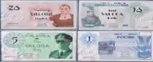 ورقات نقدية: 1 فالورا، 5 فالورا، 10 فالورا، 20 فالورا