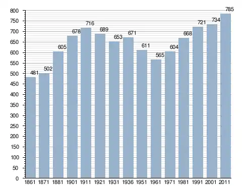 في سنة 1861 بلغ عدد السكان 481 نسمة، وتطور العدد ليصل في سنة 2011 لـ 785 نسمة.