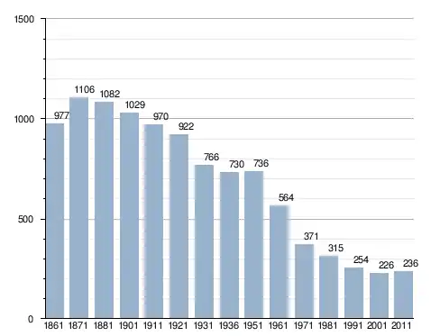 في سنة 1861 بلغ عدد السكان 977 نسمة، وتطور العدد ليصل في سنة 2011 لـ 236 نسمة.