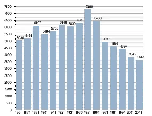 في سنة 1861 بلغ عدد السكان 5٬036 نسمة، وتطور العدد ليصل في سنة 2011 لـ 3٬641 نسمة.