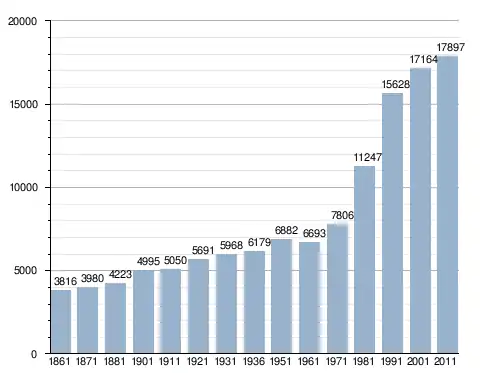 في سنة 1861 بلغ عدد السكان 3٬816 نسمة، وتطور العدد ليصل في سنة 2011 لـ 17٬897 نسمة.