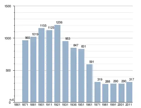 في سنة 1871 بلغ عدد السكان 965 نسمة، وتطور العدد ليصل في سنة 2011 لـ 317 نسمة.