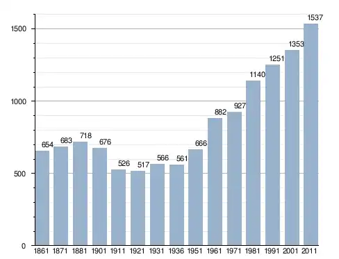 في سنة 1861 بلغ عدد السكان 654 نسمة، وتطور العدد ليصل في سنة 2011 لـ 1٬537 نسمة.