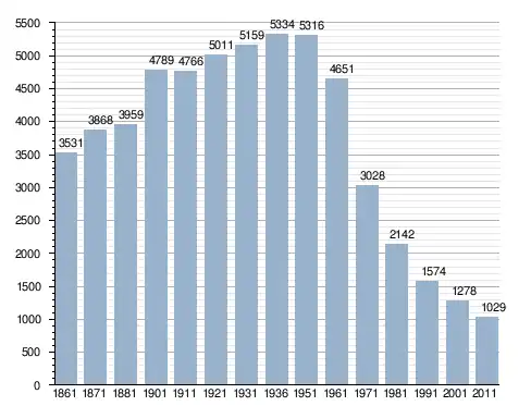 في سنة 1861 بلغ عدد السكان 3٬531 نسمة، وتطور العدد ليصل في سنة 2011 لـ 1٬029 نسمة.