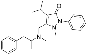 | 1-methyl-5-{[methyl(1-phenylpropan-2-yl)amino]methyl}-2-phenyl-4-(propan-2-yl)-1,2-dihydro-3H-pyrazol-3-one | |