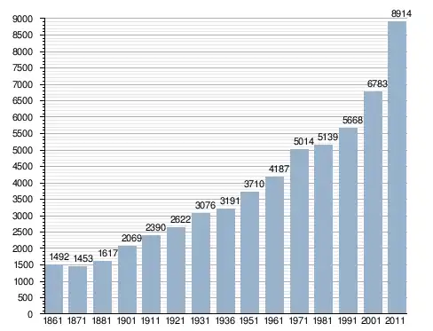 في سنة 1861 بلغ عدد السكان 1٬492 نسمة، وتطور العدد ليصل في سنة 2011 لـ 8٬914 نسمة.