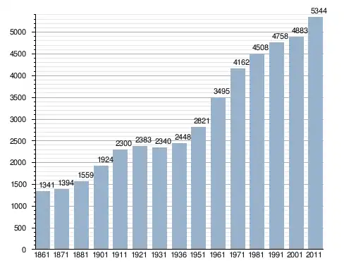في سنة 1861 بلغ عدد السكان 1٬341 نسمة، وتطور العدد ليصل في سنة 2011 لـ 5٬344 نسمة.
