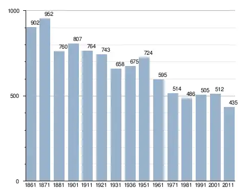 في سنة 1861 بلغ عدد السكان 902 نسمة، وتطور العدد ليصل في سنة 2011 لـ 435 نسمة.