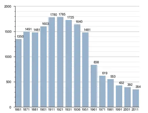 في سنة 1861 بلغ عدد السكان 1٬350 نسمة، وتطور العدد ليصل في سنة 2011 لـ 354 نسمة.