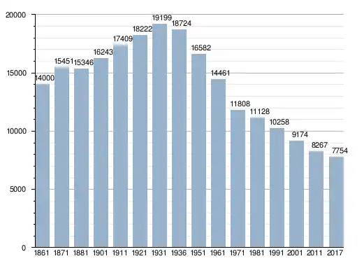 في سنة 1861 بلغ عدد السكان 14٬000 نسمة، وتطور العدد ليصل في سنة 2017 لـ 7٬754 نسمة.