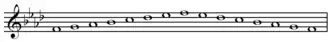 يحوي سلم فا الصغير على أربع إشارات خفض، واحدة على اللا وواحدة على السي وواحدة على الري وواحدة على المي.[1] إن السلم الصغير المتناغم معه يكون عن طربق رفع ♭E إلى ♮E.
