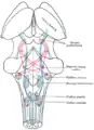 تشريح عميق لجذع الدماغ. منظر بطناني.
