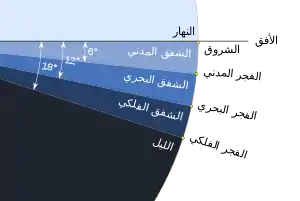 |CitationClass=تم تجاهله (مساعدة) - "The different types of twilight". مؤرشف من الأصل في 11 سبتمبر 2018. الوسيط