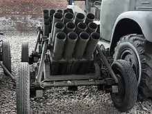 صورايخ كاتيوشا كانت جاهزة للإطلاق على قاعدة التاجي في العراق - تركيا - تُسمى هذه القاذفة بـ T-107 أو TR-107 أو TRB-107.[11]