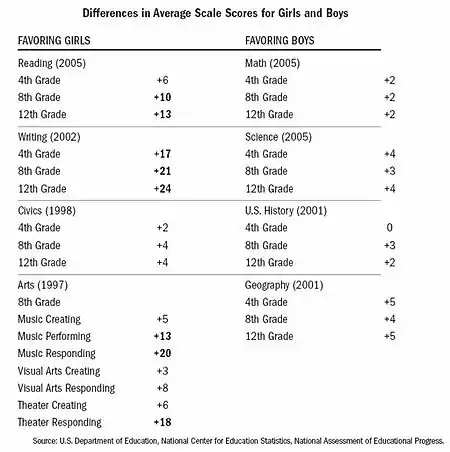 |CitationClass=تم تجاهله (مساعدة) - Robinson, Joseph Paul; Lubienski, Sarah Theule (2010). "The Development of Gender Achievement Gaps in Mathematics and Reading During Elementary and Middle School: Examining Direct Cognitive Assessments and Teacher Ratings". American Educational Research Journal. 48 (2): 268–302. doi:10.3102/0002831210372249. الوسيط