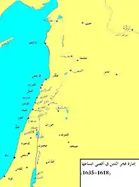 |CitationClass=تم تجاهله (مساعدة) - علاقة الأمير فخر الدين المعني الثاني بالزعامات المحلية الفلسطينية وموقف الدولة العثمانية منه، د. أسامة محمد أبو نحل، الأستاذ المساعد في التاريخ الحديث ورئيس قسم التاريخ بكلية الآداب والعلوم الإنسانية جامعة الأزهرـ غزة، 1423هـ /2003م