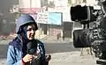 فِداء نَصر أثناء تغطيتها للمواجهات