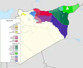 خلال الانتداب الفرنسي، قُسّمت سوريا إلى العديد من الكيانات المستقلة ذاتيا، وكان معظمها يحمل اسم "الدولة" (بالفرنسية État)، وهذه الدول هي: