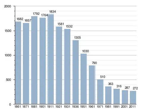في سنة 1861 بلغ عدد السكان 1٬682 نسمة، وتطور العدد ليصل في سنة 2011 لـ 272 نسمة.