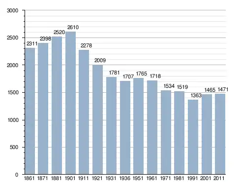 في سنة 1861 بلغ عدد السكان 2٬311 نسمة، وتطور العدد ليصل في سنة 2011 لـ 1٬471 نسمة.
