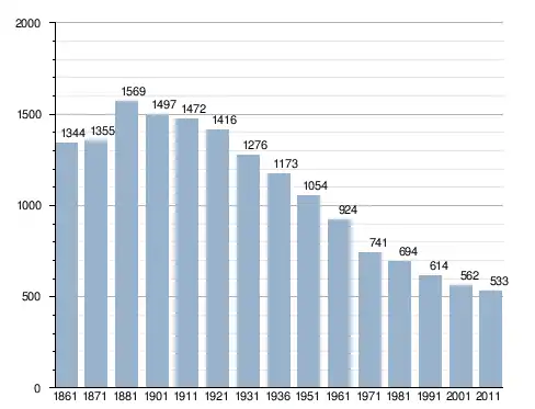 في سنة 1861 بلغ عدد السكان 1٬344 نسمة، وتطور العدد ليصل في سنة 2011 لـ 533 نسمة.