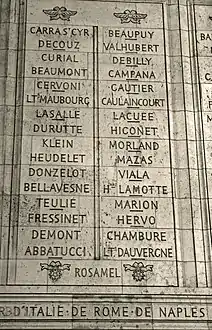 أسماء منقوشة تحت قوس النصر بباريس | |