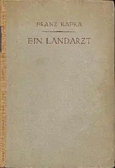 | طبيب ريفي | Ein Landarzt | 1919 (كورت وولف) | المجموعة القصصية الثانية لكافكا، وتضم أربعة عشر قصة قصيرة كتبها في عام 1916 من بينها قصة قصيرة تحمل اسم المجموعة. | ![]() |