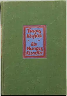 | فنان جوع | Ein Hungerkünstler | 1924 (صادرة عن دار نشر دي شميده) | مجموعة من أربعة قصص قصيرة. وهذه المجموعة هي الأخيرة التي يعدها كافكا للنشر وذلك قبل وفاته في نفس سنة نشر هذه المجموعة. | ![]() |
