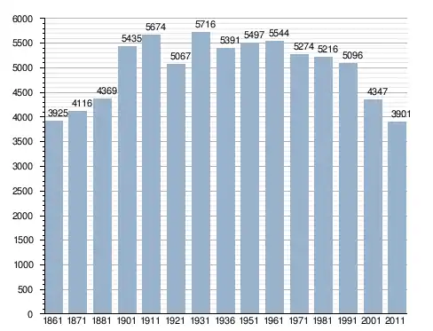 في سنة 1861 بلغ عدد السكان 3٬925 نسمة، وتطور العدد ليصل في سنة 2011 لـ 3٬901 نسمة.