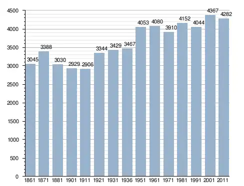 في سنة 1861 بلغ عدد السكان 3٬045 نسمة، وتطور العدد ليصل في سنة 2011 لـ 4٬282 نسمة.