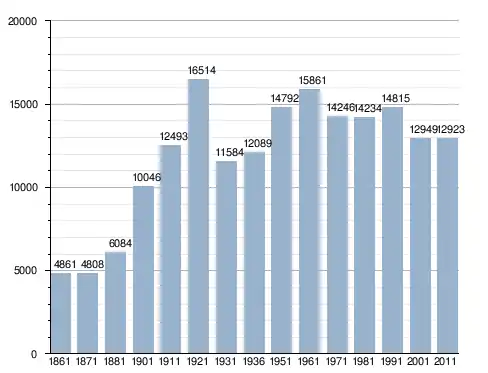 في سنة 1861 بلغ عدد السكان 4٬861 نسمة، وتطور العدد ليصل في سنة 2011 لـ 12٬923 نسمة.