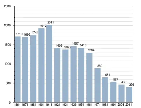 في سنة 1861 بلغ عدد السكان 1٬710 نسمة، وتطور العدد ليصل في سنة 2011 لـ 396 نسمة.