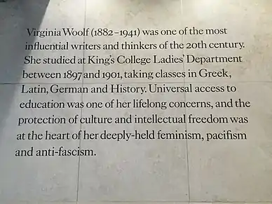 - في 2014،أُقيم معرض عن فيرجينيا وولف في المتحف الفني القومي في لندن وذلك في الفترة مابين يوليو إلى أكتوبر.[42]