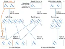 |CitationClass=تم تجاهله (مساعدة) - Woyke, J. (1963-01). "Drone Larvae from Fertilized Eggs of the Honeybee". Journal of Apicultural Research. 2 (1): 19–24. doi:10.1080/00218839.1963.11100052. ISSN 0021-8839. مؤرشف من الأصل في 10 ديسمبر 2019. الوسيط