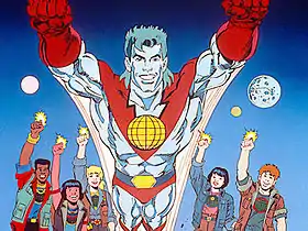 يطلقون شعاعا ينبثق منه بطل العدالة (بطل الكوكب) الذي يجمع كافة العناصر ويشكل قوة قاهرة لقهر الاعداء، في احدى المرات تجتمع القوى الشريرة لتوحد قواهم كما يفعل ابطالنا ولكن بتوحيد الدخان والغازات والسموم الضارة للقضاء على البيئة ولكن ابطالنا لهم بالمرصاد.
