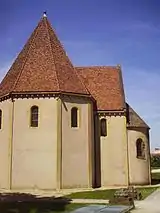 هناك العديد من المباني تتميز بمعالم لشخصيات فرسان الهيكل مثل صورة فارسين يركبان حصانا واحداً، وهي للتعبير عن حالة فقرهم. أيضا كانت المباني المحيطة تشتمل على تصميمات من كنيسة القيامة بالقدس القديمة.[81]