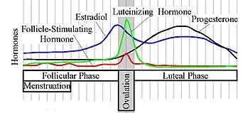 من المفترض أن تنظيم دورة التبويض عن طريق هرمونات الجنس، وخاصة الاستراديول والبروجستيرون، والتي تصبح مرتفعة في أوقات مختلفة عبر الدورة. على وجه الخصوص، ثبت أن المستويات العالية من الاستراديول والمستويات المنخفضة من هرمون البروجسترون تبلغ ذروتها في فترة الخصوبة العالية قبل الإباضة، وهي مرتبطة ببعض التغييرات النفسية المرتبطة بالتزاوج. [22][23] ومع ذلك؛ فقد وجدت بعض الدراسات ارتباطات مع التغيرات في الاستراديول. [24][25] من الثابت أن الاستراديول يمكن أن يعمل في الدماغ لإنتاج تغييرات نفسية وسلوكية أخرى، [26] وتميل الدراسات الحيوانية إلى إظهار وجود صلة بين السلوك الجنسي وتركيزات هرمون الاستروجين. [27] وقد تم دراسة هرمونات أخرى مثل هرمون التستوستيرون، وهرمون محفز الحويصلات (FSH)، والهرمون منشط للجسم الأصفر (LH)، والبرولاكتين على أنهم ممكن أن يكونوا مرتبطين بالسلوك الجنسي، لكن معظمها لم ينتج عنها تأثير يذكر.