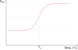 يمكن استخدام فرط الكرومية لتحديد وتتبع حالة الدنا مع تغير درجة الحرارة. درجة حرارة الانتقال/التحول (Tm) هي درجة الحرارة التي يكون فيها امتصاص الأشعة فوق البنفسجية في 50% (المنتصف) بين معدل الامتصاص الأقصى والأدنى أي: أين يكون 50% من الدنا قد تمسّخ.