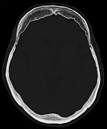 فرط تعظم باطن العظم الجبهي كما يظهر بواسطة الأشعة المقطعية.
