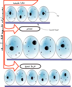 ![]() يتسبب تضخم الخلايا بزيادة في حجم الخلايا، لكن فرط تنسج يزيد من عدد الخلايا يتسبب تضخم الخلايا بزيادة في حجم الخلايا، لكن فرط تنسج يزيد من عدد الخلايا | |