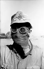 مشاة ألماني يطلب الحماية من غبار الصحراء: الصحراء الغربية: 1942.